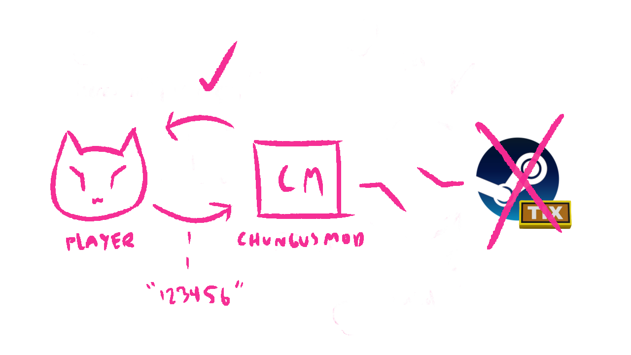 Chungusmod. The game server detects an incoming packet on the exclusive Chungusmod channel, unwraps the packet, and sends it across the bridge to Chungusmod. Once crossed, the game server now knows who is supposed to be joining and what verification codes each player needs to use to be verified and authenticated! Neat!