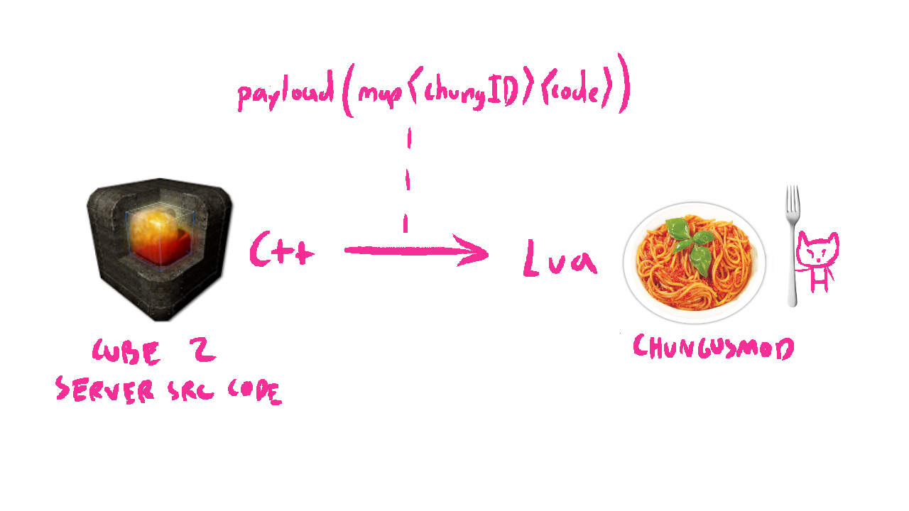 Technically, as of now, a mischievous player can run their own ENet client using the same address and port to send packets to this Chungusmod channel which could be exploited. I haven’t thought of making it secure yet as this stage of the project, but there’s always a solution.